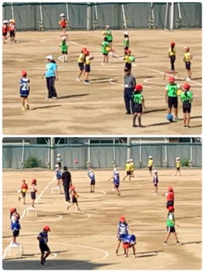 3年生の体育の授業の様子です。今日は、「ポートボール」に取り組んでいました。