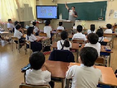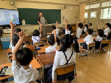 2年1組の外国語の授業の様子です。今日は、C−NET(外国人指導員)の先生による授業でした。今日のテーマは「ランチメニューについて」です。アメリカの給食について先生からの質問され、想像を膨らませていました。