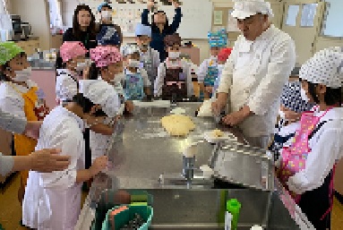 10月17日(木)、すまいるのファースト(1〜4年生)の授業で、「パンづくり」に取り組みました。パン工房の方が、一次発酵したパンだねをもってきてくださいました。本日の授業の講師もしてくださいます。みんなからの「よろしくお願いします。」のあいさつで始まりました。