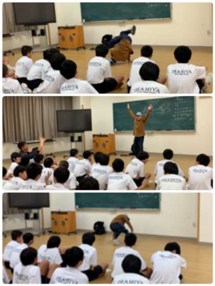 紹介の後は、曲の選曲をしました。候補の曲を流しながら、ブレイクダンスの動きも見せてもらいました。7年生も、のりのりになってきました。次回から、本格的に動きの練習になります。とても楽しみです。