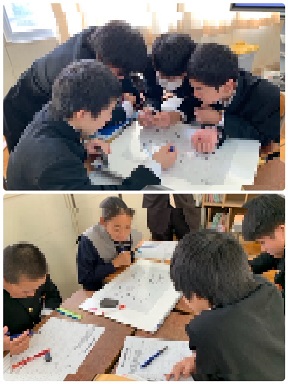 「ジグソー法」といわれる学習の方法を取り入れていました。まず、班の中で、五角形から十角形までの中で、どれを担当するか決めました。次に、同じ多角形を担当する者が集まります。(エキスパート班といいます)協力して考えた後、元の班(ジグソー班といいます)に戻って、班員に説明します。
