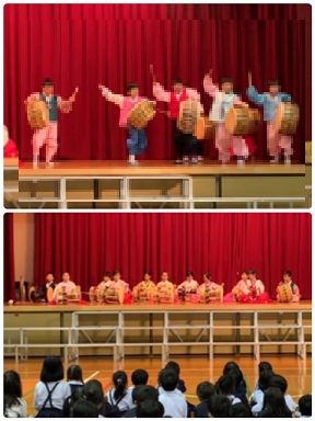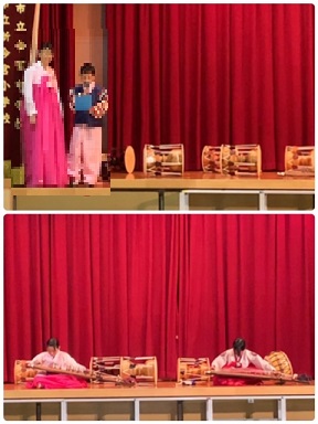 11月19日(火)、5時間目の前を時間を活用して、テナムの会のメンバーが校内発表会をしてくれました。みんなの前で発表することを目標に、朝や昼の時間も使って、一生懸命練習していました。発表内容は、「カヤグン、サムルノリ、ソゴチュム、ポナ、サンモ」です。