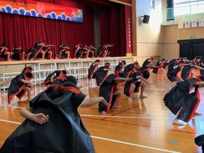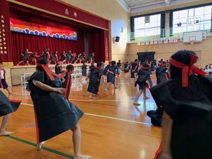 最初の発表は、3・4年生による「ソーラン節」です。舞台壇上に、3・4年生全員で作成した大漁旗があがりました。みんなで学習発表会を成功させようという気持ちが込められています。