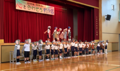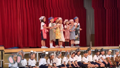 1年生による劇「サラダでげんき」です。絵本「サラダでげんき」を元にした音楽劇をしてくれました。