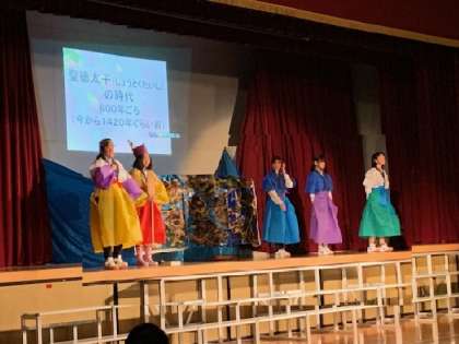 新喜劇風に、歴史の中の有名なエピソードを演じてくれています。聖徳太子の有名な裏話が劇中で紹介されました。そして、大化の改新の様子が、劇の一幕になっていました。