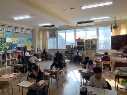 12月4日(水)、3年生〜6年生では「大阪市学力経年調査」を実施しています。3年生にとっては、初めての体験です。問題用紙と解答用紙が分かれているのも初めてです。担任の先生から、ていねいな説明を受けて、頑張っています。
