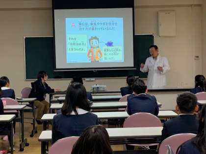 12月4日(水)、薬剤師の先生をお招きして、6年生対象に「薬の正しい使い方講座」をしていただきました。人の体は自分で治す力を持っていることからお話は始まりました。この講座の中で、薬の種類や役割り、そして、薬を飲むときの7つの約束について教えてもらいます。また加えて「たばこの害について」も教えてもらいます。ご家庭でも、どのようなお話を聞いたのか、よろしければ聞いてあげてください。