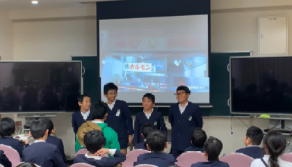 そして、お肉屋さんもたくさんあることに気づきます。さらに、ここならではの食材が「ホルモン」です。・・と6年生のプレゼンが続いていきました。