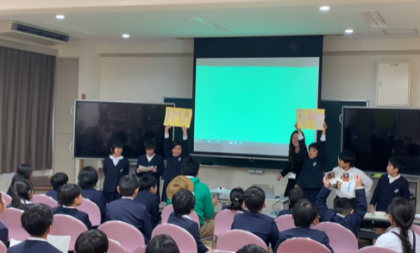 最後に、再び4年生にプレゼンをバトンタッチしました。歌による「大阪の文化〜たこやき」のアピールです。
