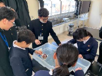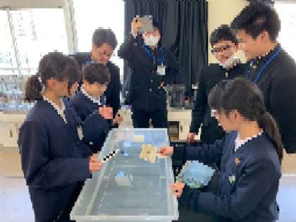 「鏡やアルミホイルに描いた魚のイラスト」が水に浮くという実験をしています。