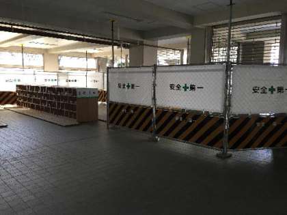 また、既設校舎の改装もはじまりました。下足場周辺の改修が始まりました。靴箱の位置が少し変わりました。しばらくは窮屈です。