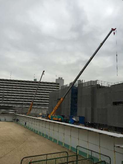 このところ日が暮れてもしばらく作業は続けられています。建物の外側ができつつあるので、内部の工事も進められています。