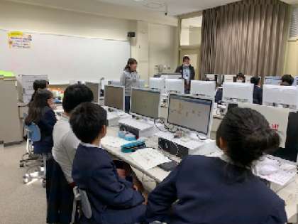 いまみや小中一貫校では、今宮工科高校の先生の協力もいただき、先行して「プログラミング学習」を実施しています。今年度も、5年生対象に「プログラミング学習」の授業が始まりました。今日は、第1時間目の授業です。写真は、5年2組の学習の様子です。