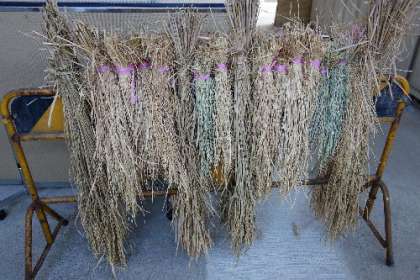 以前紹介した稲も順調に育ち、技術室前では収穫した稲が干されていました。