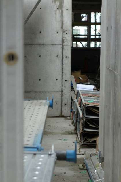 校舎内部も明かりをつけて作業をしているようです。開校まであと140日。