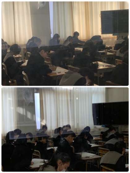 2月27日(木)、7・8年生学年末テストの2日目です。今日のテストは、社会・理科・保健体育の3教科です。しっかりがんばろう!