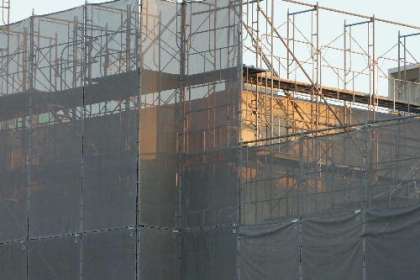 今日は夕日に映えた4階部分がきれいだったので、撮ってみました。工事は進んでいるようです。