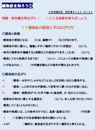 また、小学生のみんなも( )に入る言葉が新聞やニュースで報じられています。考えながら感染防止に努めましょう。