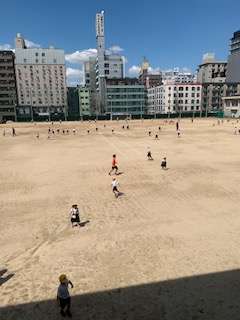 サッカーをするクラスが3学年、鬼ごっこをしてるのも同じくらいと広いグランドで走り回っています。