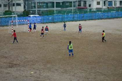2学期末の懇談をしています。…ということは、午後からクラブができる日でもあります。だから、午後からみんな一生懸命クラブ活動にいそしんでいます。写真は運動時で活動するサッカー部と野球部。