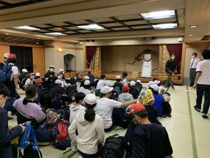雨のため、急遽大広間をお借りして開所式を行いました。