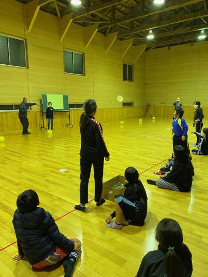 次は、円盤投げ。紙皿を遠くへ飛ばします。