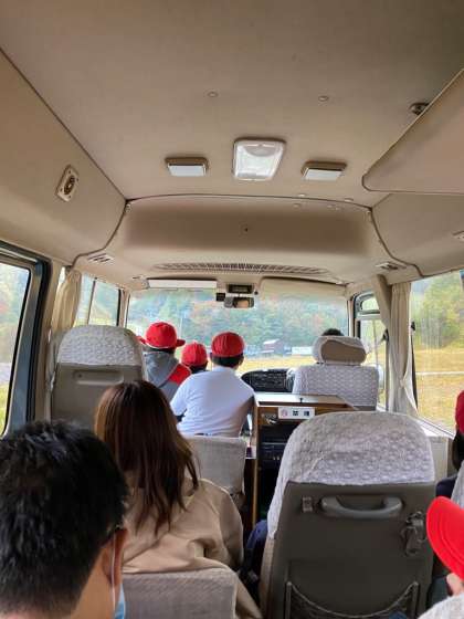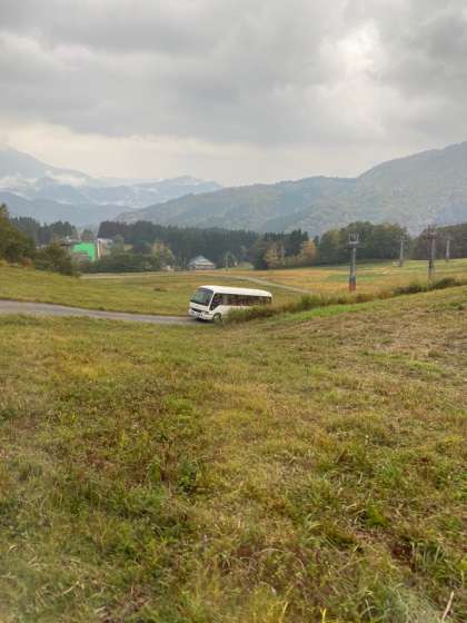 雨が上がりましたので、山頂までマイクロバスで移動です。急な坂をのぼります。