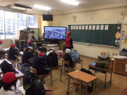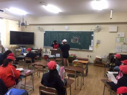 本日、小学校では避難訓練を兼ねた全校たてわり遠足を行います。