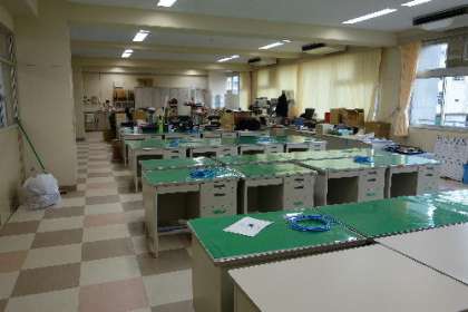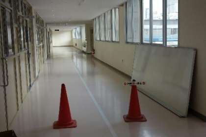 右の写真は廊下。「生徒の立ち入り禁止」札が出ています。まぁ、小学校の教室なので、基本、用がないはずなのでそういう措置にしています。