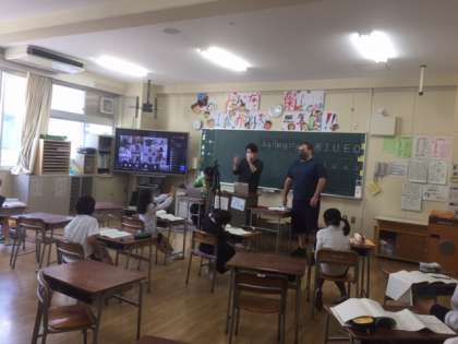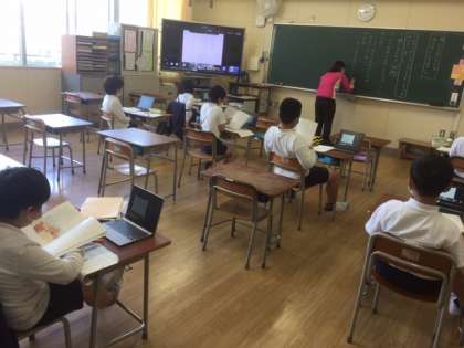 家にいる児童も、教室にいる児童も声を合わせて音読を行いました。