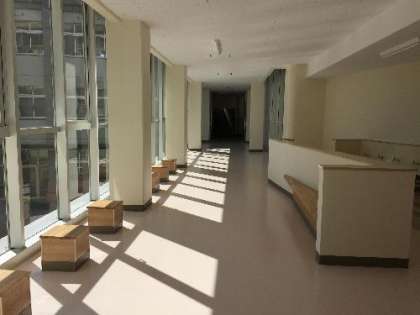 渡り廊下に注いでくる日の光は、まさに春の陽光です。ここに小学生を迎える日を万全の態勢で迎えたいと思います。