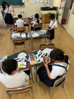 クラゲを自身のイメージで着色、飾り付けをしています。