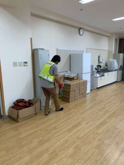 明日の土曜授業での防災教室に向けて西成区役所の方が準備をしてくれています。