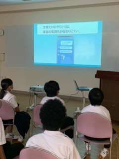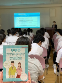 docomoから講師に来ていただきSNSの上手な使い方(ルール、マナーを守る)や困ったときは大人に相談する。