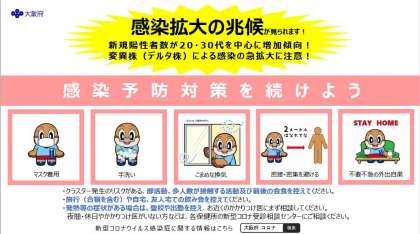 まん延防止等重点措置を実施すべき期間が延長されたことから、デルタ株など新たな変異株の市中感染の恐れ等も勘案し、措置期間中は、「非常事態(赤色信号)」を引き続き点灯させる。