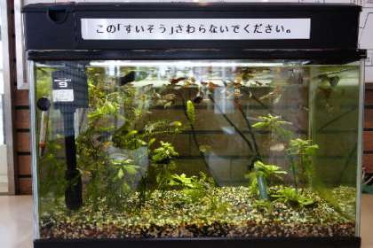 玄関のピロティにいつの間にか水槽が…。(写真下)