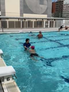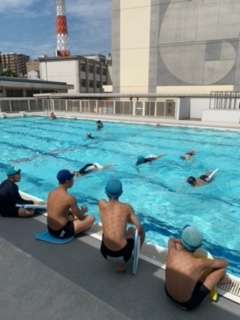 クロールの手だけ(プル)の練習をしています。苦手な子には特別メニュー。