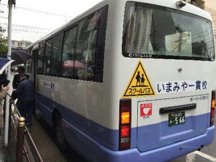 初めてのスクールバスなので、乗り降りにも時間がかかり、スケジュールも遅れがちでしたが、皆さんの協力を得て、事故なく初日を終えることができました。明日から時刻表が変更になるので、ご注意ください。少し時間が早くなります。