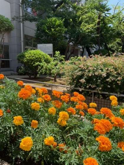 正門や今宮の森前の花壇にはキレイに整備された花が咲き誇っております。