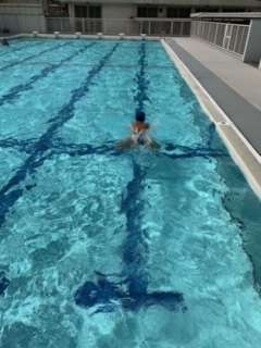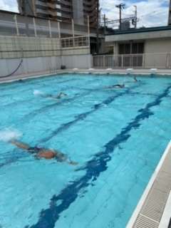 クロール、クイックターンの練習と、特別講習で中学生で習うブレストを練習しました。