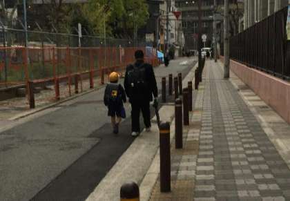 小学生と中学生が登校していくところなのですが、手をつないだり、頭をなでたりと、結構仲の良い登校シーンでした。