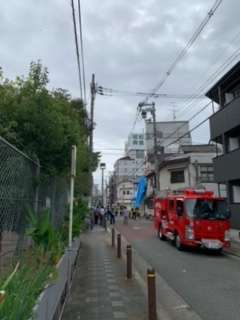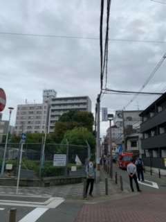 本校の南西付近、花園公園の隣の道が封鎖されています。
