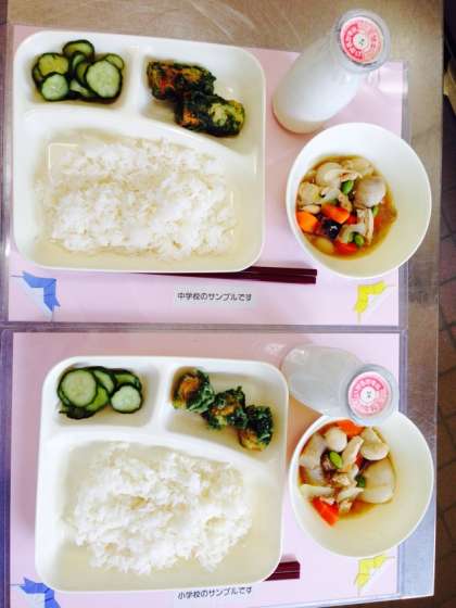 竹輪の磯部あげは、青のりをたっぷりと使っています。さわやかな香りで食欲のアップする献立です。