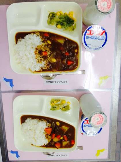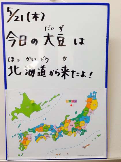 今日のカレーライスには大豆(水煮)が入っています。豆類が苦手な子どもたちにも食べてもらえると思います。