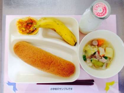 今日は、中学生が中間テストのため小学校のみ給食があります。