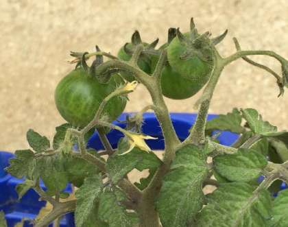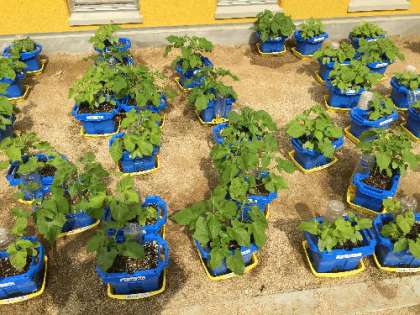 サブグラウンドで育てているアサガオやミニトマトなどが初夏の日光を受けて、大きくなってきています。 アサガオは葉を広げて、茂りつつあります。ミニトマトはまだ緑色をしていますが、よく見ると実を付けてきています。