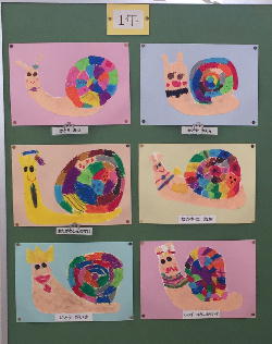 一年生はマイマイの絵が貼られていました。みんなとてもかわいく、愛想の良い絵に仕上がっていました。