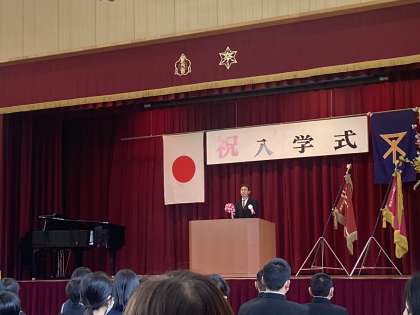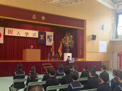 学校長式辞では、小学生には「あいさつと返事を元気よくすること」「友達と仲良くすること」について、中学生には「時間を守ること」と「友達や仲間を大切にすること」について話がありました。