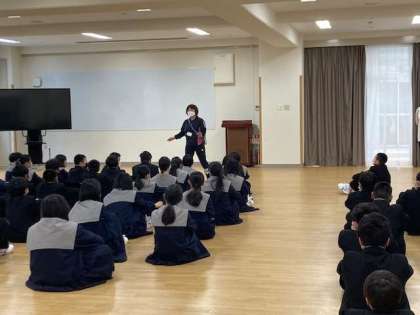 4月14日、朝の7年生学年集会の様子です。毎週木曜日の朝は学年集会を行います。