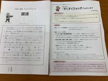 小学校では、5・6年生がそれぞれ、「すくすくウオッチ」・「全国学力・学習状況調査」を行いました。国語や算数など教科の問題だけでなく、アンケートや質問にも答えました。